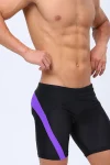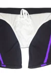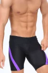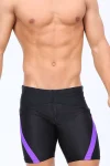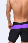 Men’s stylish & colorful black swim trunks with diagonal purple striping across the front. Lower fabric on the swimsuit is composed of mesh facric, which makes it semi-transparent. Elastic waist and inner drawstring. Hugs everything in the right places. Made of stretchy and comfortable Polyester fabric. Lined and includes Includes bulge enhancing removable cup.