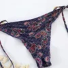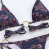 This purple paisley strappy boho bikini is sexy and highlights your curves. Large gold rings on the top and bottom straps add to the charm of this beautiful bikini. The bottoms, which tie at the sides, rest high on the waist and help create the illusion of longer legs.