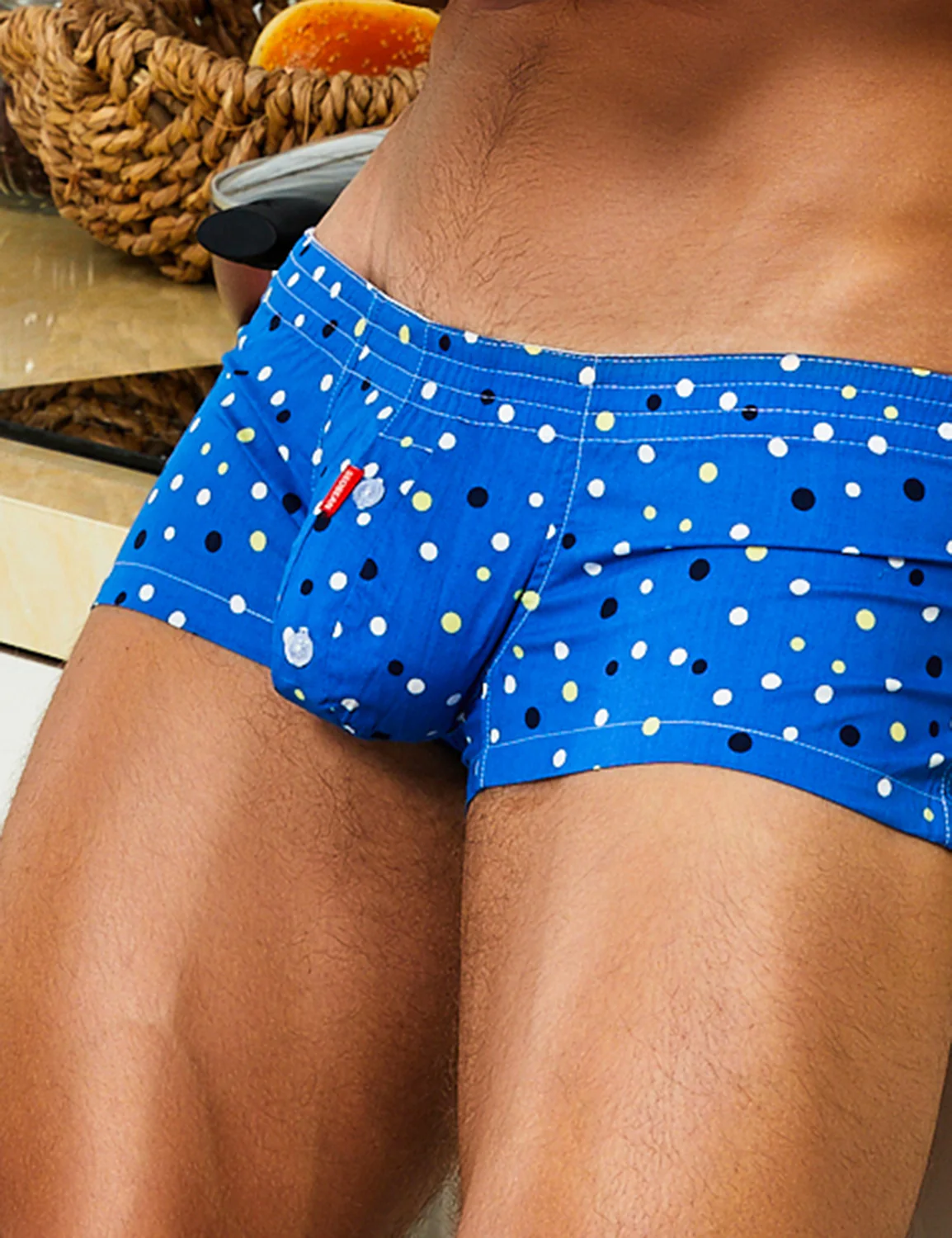 These Seobean boxer brief trunks have colorful polka dot designs. They have a close to the body sexy fit and are soft and comfortable. The front features a cup-shaped pouch to support your man parts perfectly.