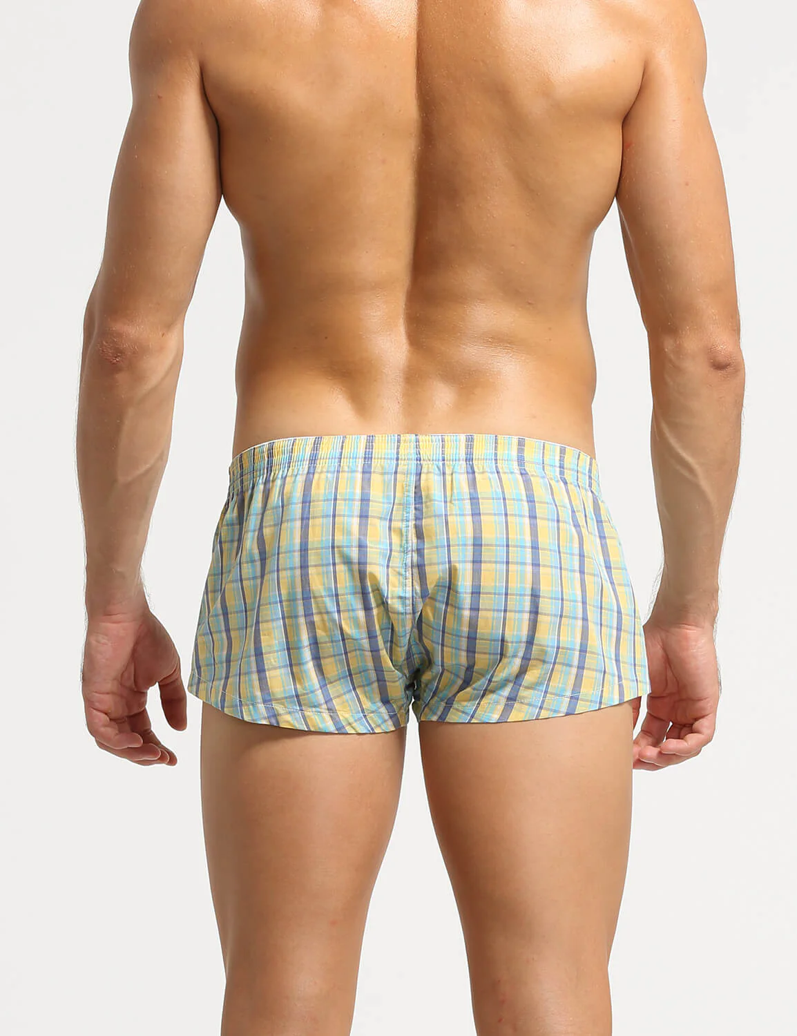 These Seobean boxer brief trunks have colorful Madras plaid designs. They have a close to the body sexy fit and are soft and comfortable. The front features a cup-shaped pouch to support your man parts perfectly.