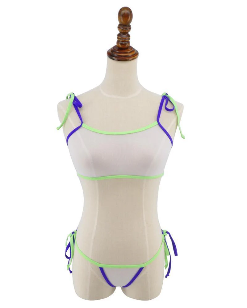 This colorful sheer bikini is as sexy and bold as you’ll be when you wear it! If you’re looking for something you can wear that will rule the beaches and never cease to catch peoples looks, This sheer see-through bikini is what you’ve been looking for. It is available in all white or white with colorful edging and ties.
